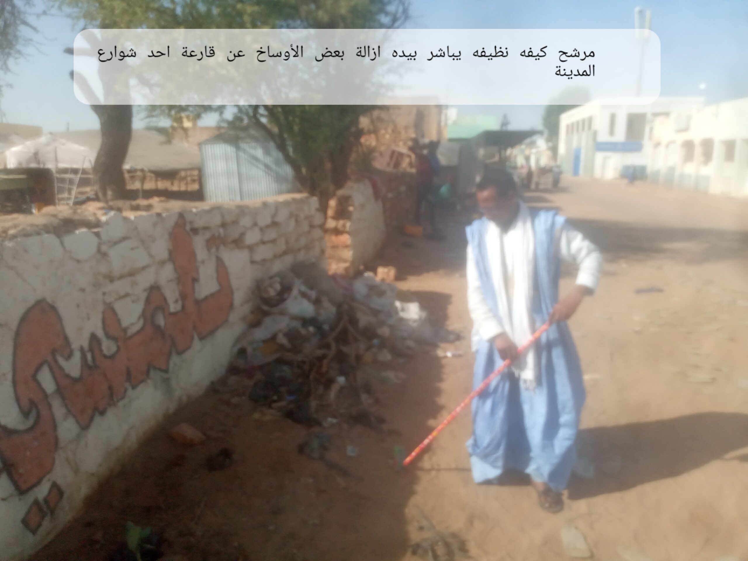 مرشح مجموعة “كيفه نظيفه” يباشر اليوم بيده ازالة بعض الأوساخ من قارعة أحد الشوارع الرئيسية للمدينة