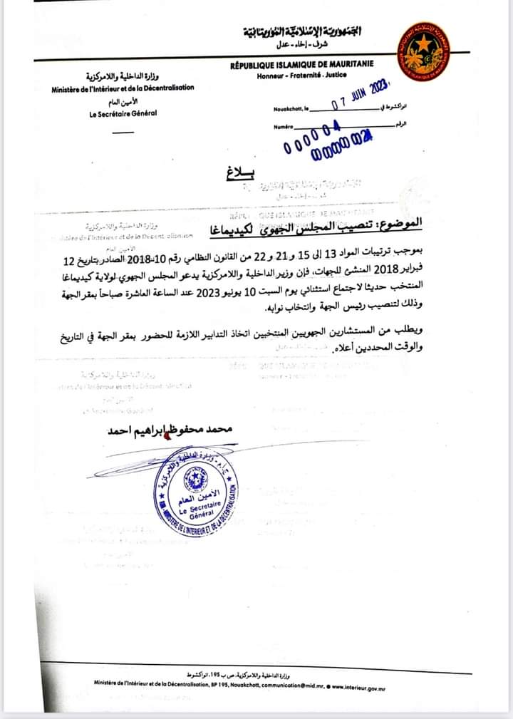 الداخلية تحدد تنصيب المجلس الجهوي لكيدي ماغا