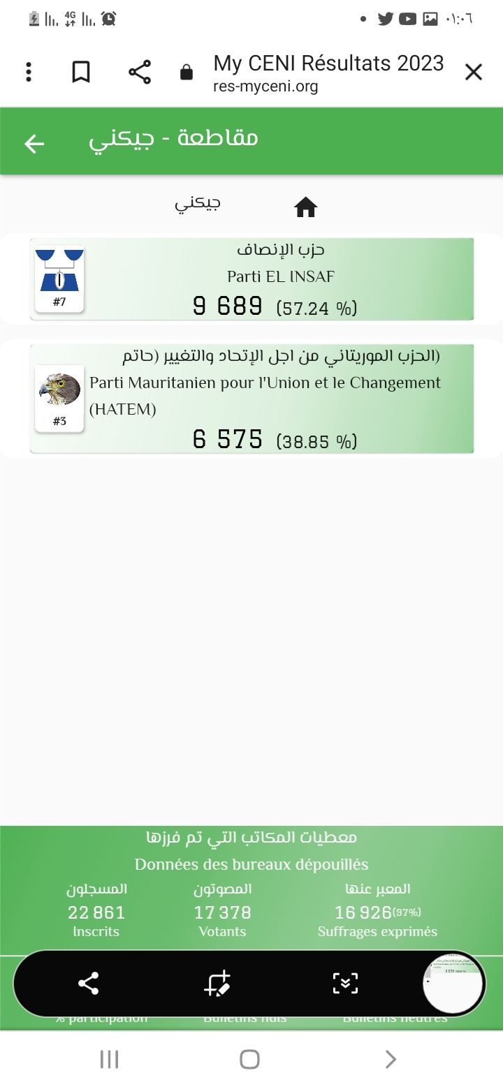 فاز حزب الانصاف بمقاعد النواب في جكني بولاية الحوض الشرقي وخسر مقاعد مقاطعة كرو بولاية لعصابى