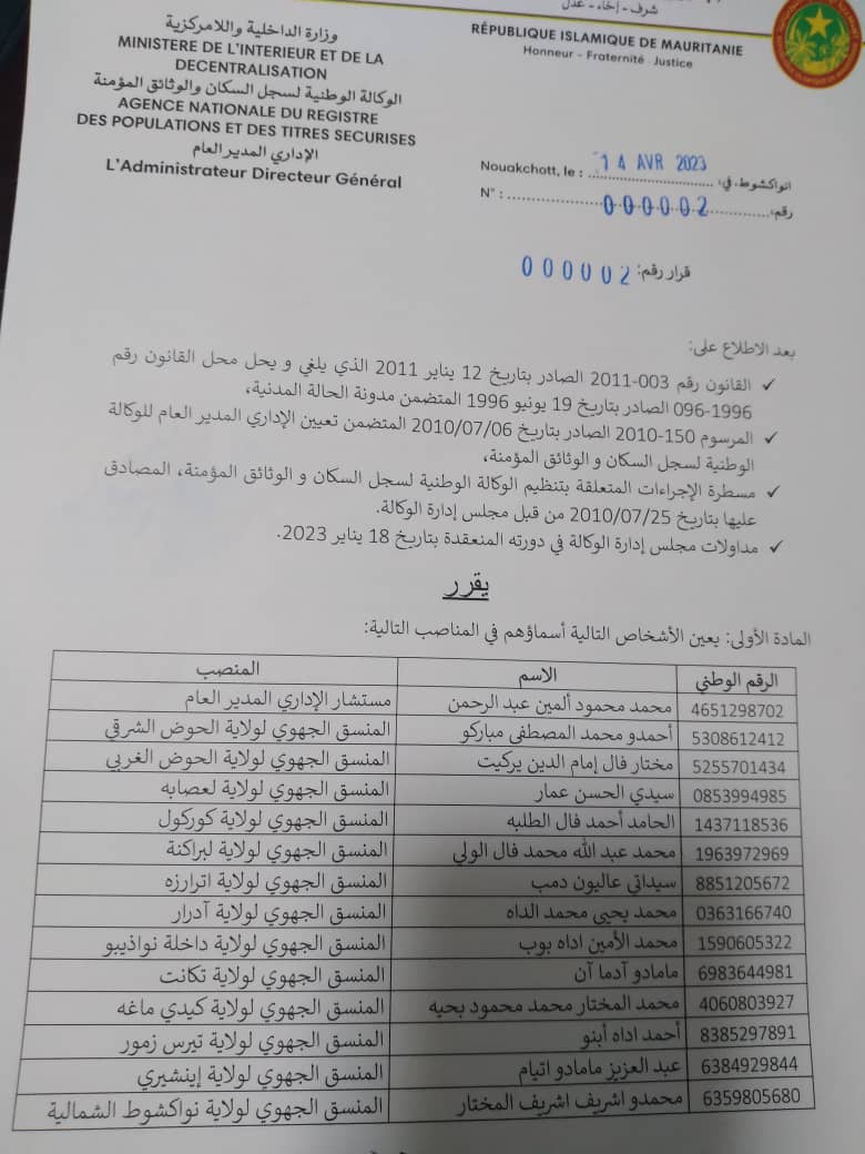 بموجب مذكرة وقعها الإداري المدير العام للوكالة سيدي عالي نافع، تم تعيين سيدي الحسن عمار منسقا جهويا في ولاية العصابة…